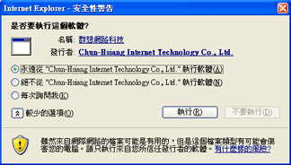 請選擇"永遠從"Chun-Hsiang Internet Technology Co, Ltd." 或 "ThinkNewIdea Internet Technology Co, Ltd."執行軟體(A),並按"執行",即可進入遊戲。