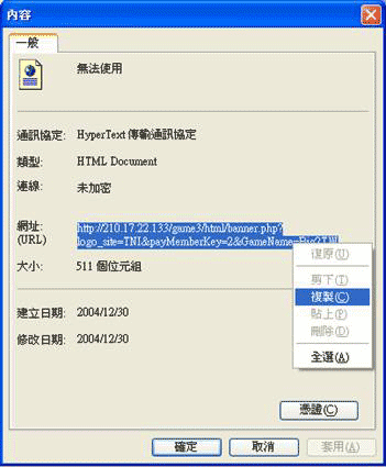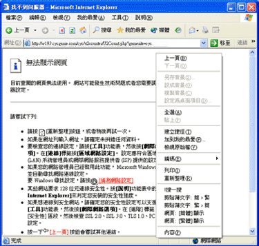 紀錄網址步驟: 1、於出現 ” 找不到網頁 ” 的地方(空白處)點選 ” 滑鼠右鍵 ” → 內容。