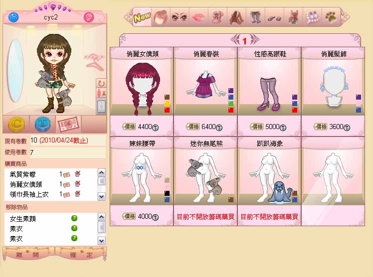 時尚沙龍造型人物可供設定的有:髮型、眼睛、嘴巴、上衣、套裝、鞋子等多樣分類,每個部份均有超過10種的選擇,每個人都可以搭配出個人獨特的風格!