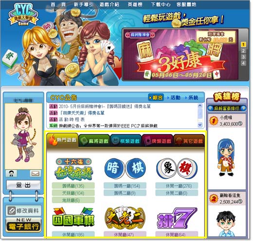 步驟二:在遊戲網的中央區塊選擇想玩的遊戲