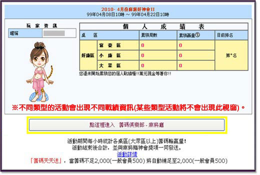 步驟三:點選活動資訊視窗的遊戲進入按鈕