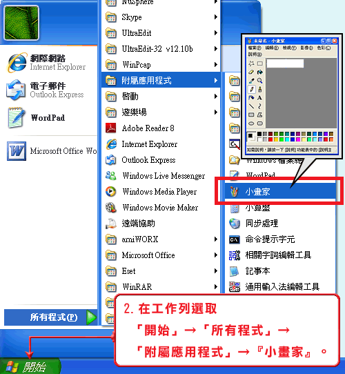 步驟二、開啟 -> 開始/所有程式/附屬應用程式/小畫家。 |