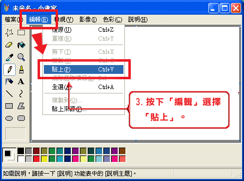 步驟三、點『編輯』選擇「貼上」動作。 |