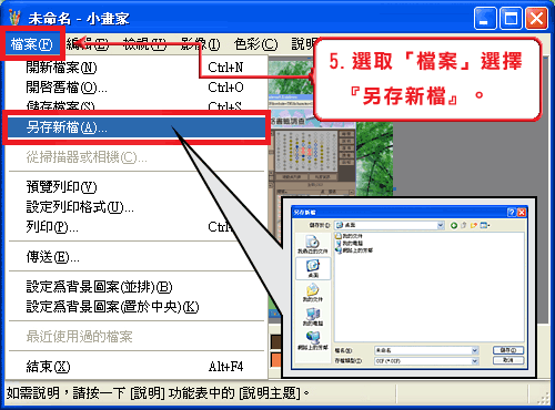 步驟五、將此畫面存檔,選擇檔案 / 另存新檔。 |