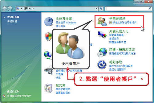 步驟二、點選“使用者帳戶”。