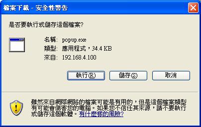 (1) 點選[ 解決封鎖快顯 ]執行後,會出現如下圖視窗,請按下"執行"來執行此程式。